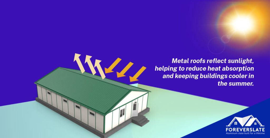Another benefit of metal roofing is its energy efficiency. Metal roofs reflect sunlight, helping to reduce heat absorption and keeping buildings cooler in the summer. This can lead to lower energy bills for businesses, as they can rely less on air conditioning to maintain a comfortable indoor temperature. Additionally, metal roofs are often made from recyclable materials, making them an environmentally friendly choice for businesses looking to reduce their carbon footprint.