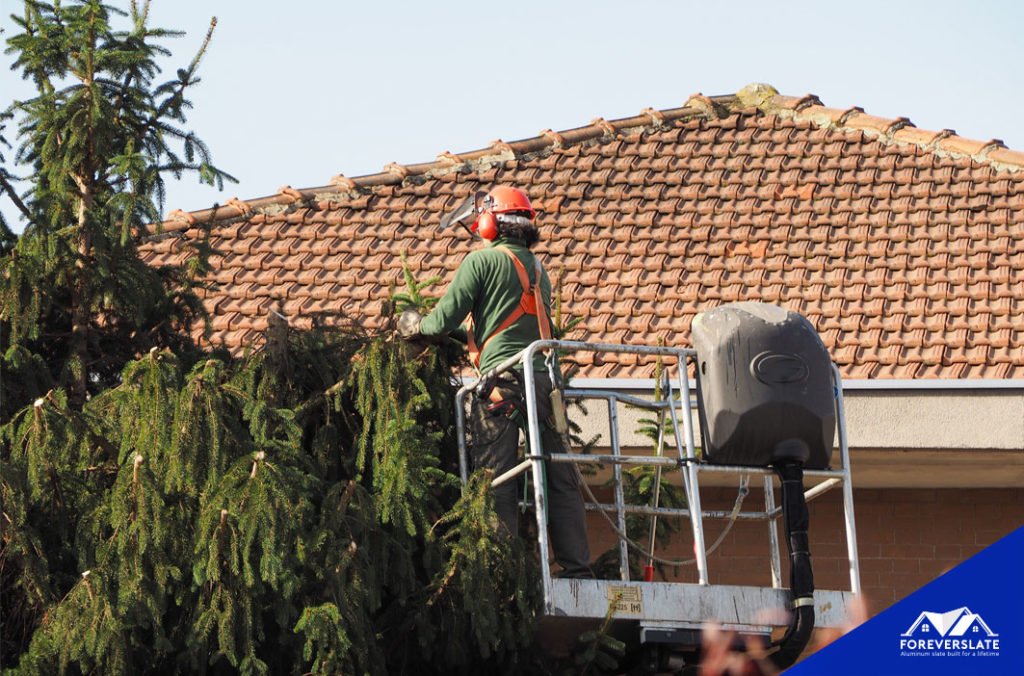 - Trim Trees: Overhanging branches can scrape your shingles and deposit leaves and debris that hold moisture against your roof. Trim branches back regularly, or hire a professional if needed.